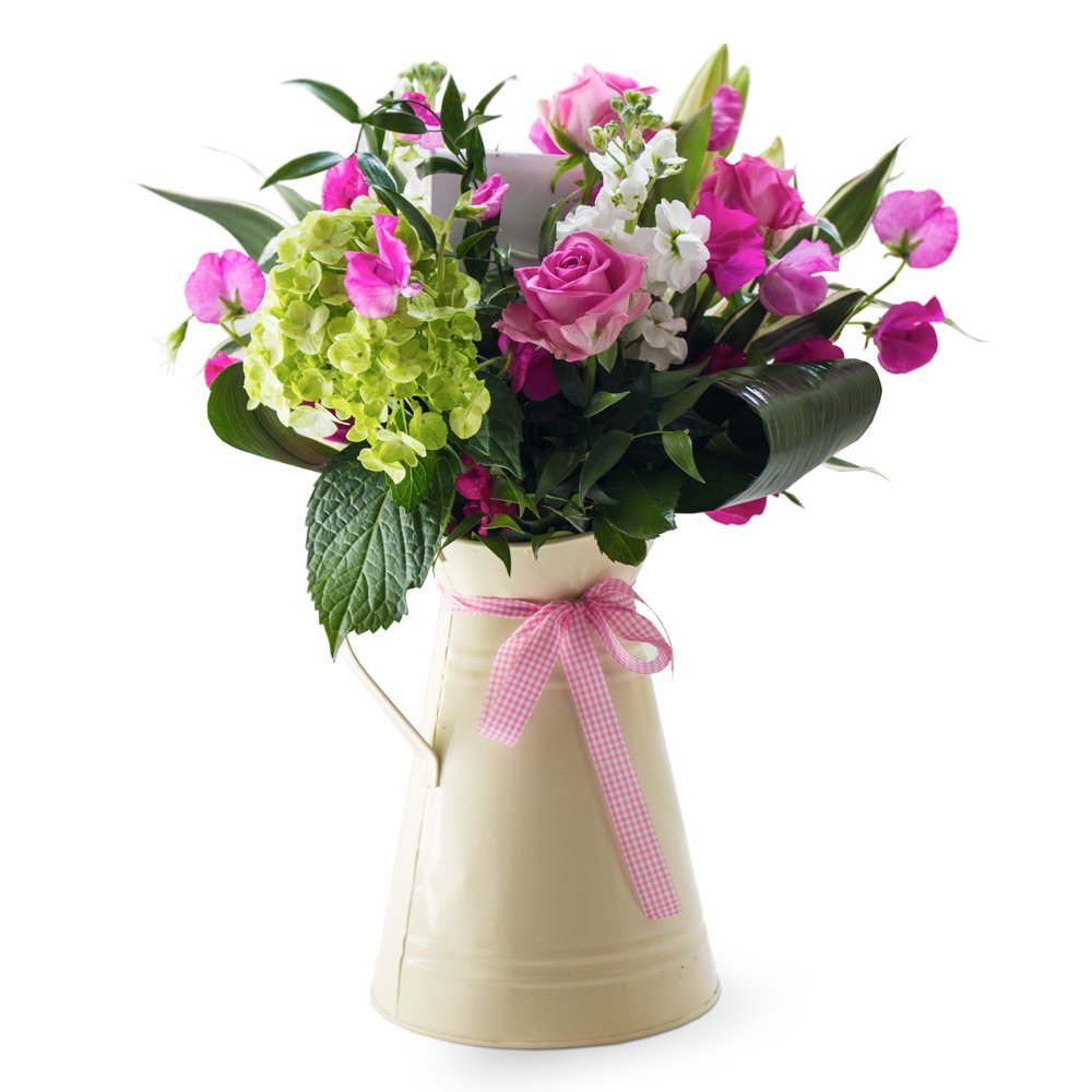 A wonderful variety of whites and pinks lovingly embellished with emerald foliage. Whatever the occasion this arrangment is ideal to let that special someone know how much they mean to you. Container may vary.